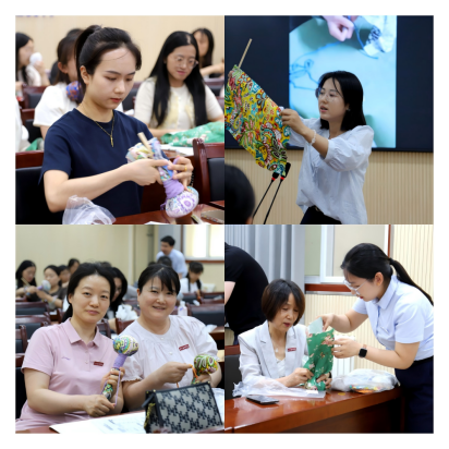 宣讲会结束后,财务处联合浦发银行开展了互动活动。浦发银行组织参会预算员进行了别开生面的创意手工活动——制作艾草锤及香包。在热烈的氛围中,参与者体验传统手工艺的魅力,缓解工作压力。同时,银行工作人员为参会人员提供了金融理财咨询、防范金融诈骗知识普及等服务,并结合教职工实际需求,详细介绍了个人金融规划、校园金融安全等实用内容,将财务服务与金融知识普及有机结合。